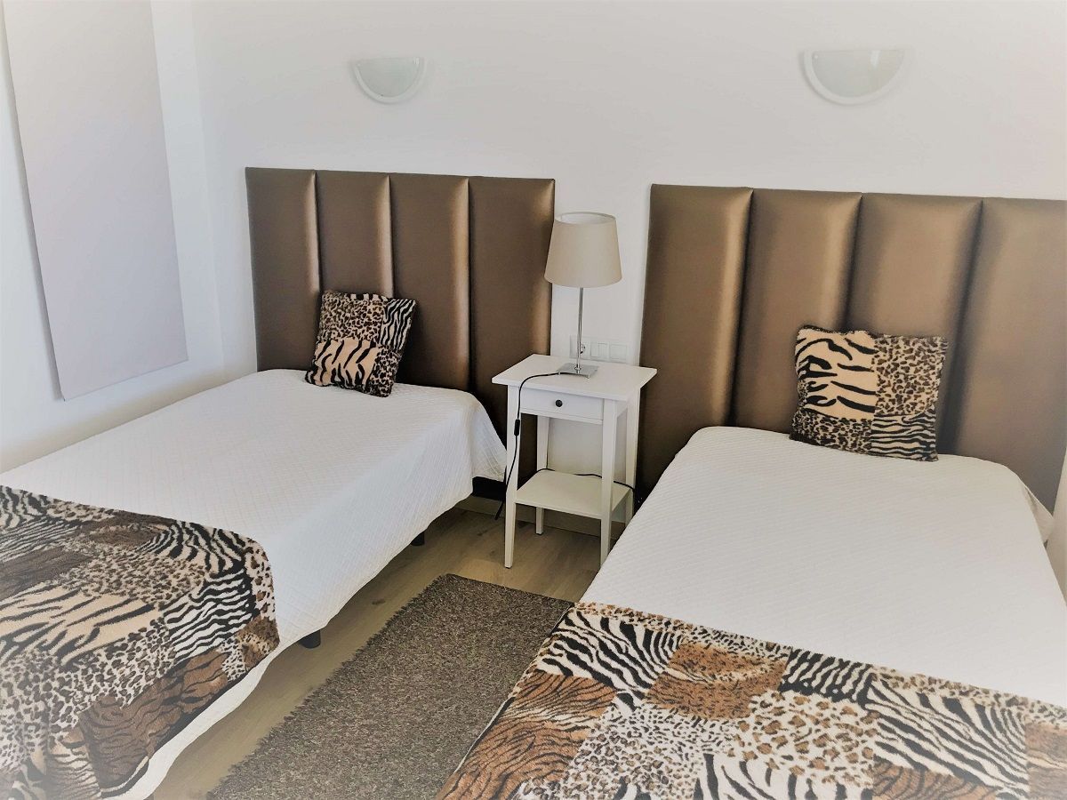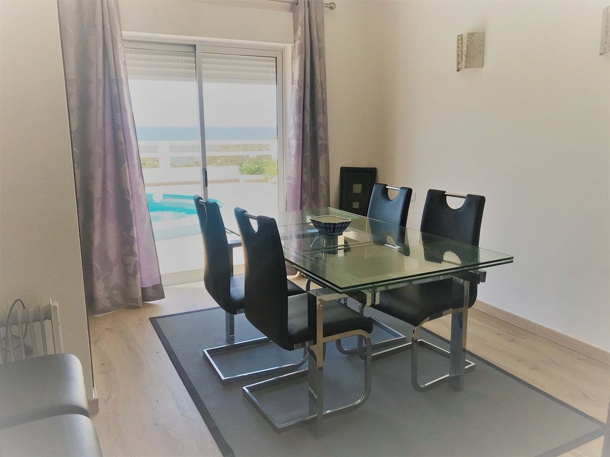 O primeiro andar é composto por 2 quartos casais com vista para o mar, 1 quarto solteiro e 1 casa de banho com duche e sala de pingo pongue. O piso térreo por 1 quarto solteiro, 2 casas de banho (uma de duche e outra com banheira), sala de estar, sala de jantar e cozinha.
