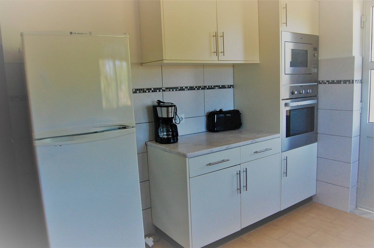 Cozinha: Fogão, Forno, Frigorifico/congelador, Micro-ondas, Chaleira elétrica, Máquina de café Delta, Cafeteira, Torradeira, Máquina de lavar loiça, Máquina de lavar roupa (no exterior da cozinha), Ferro de engomar.